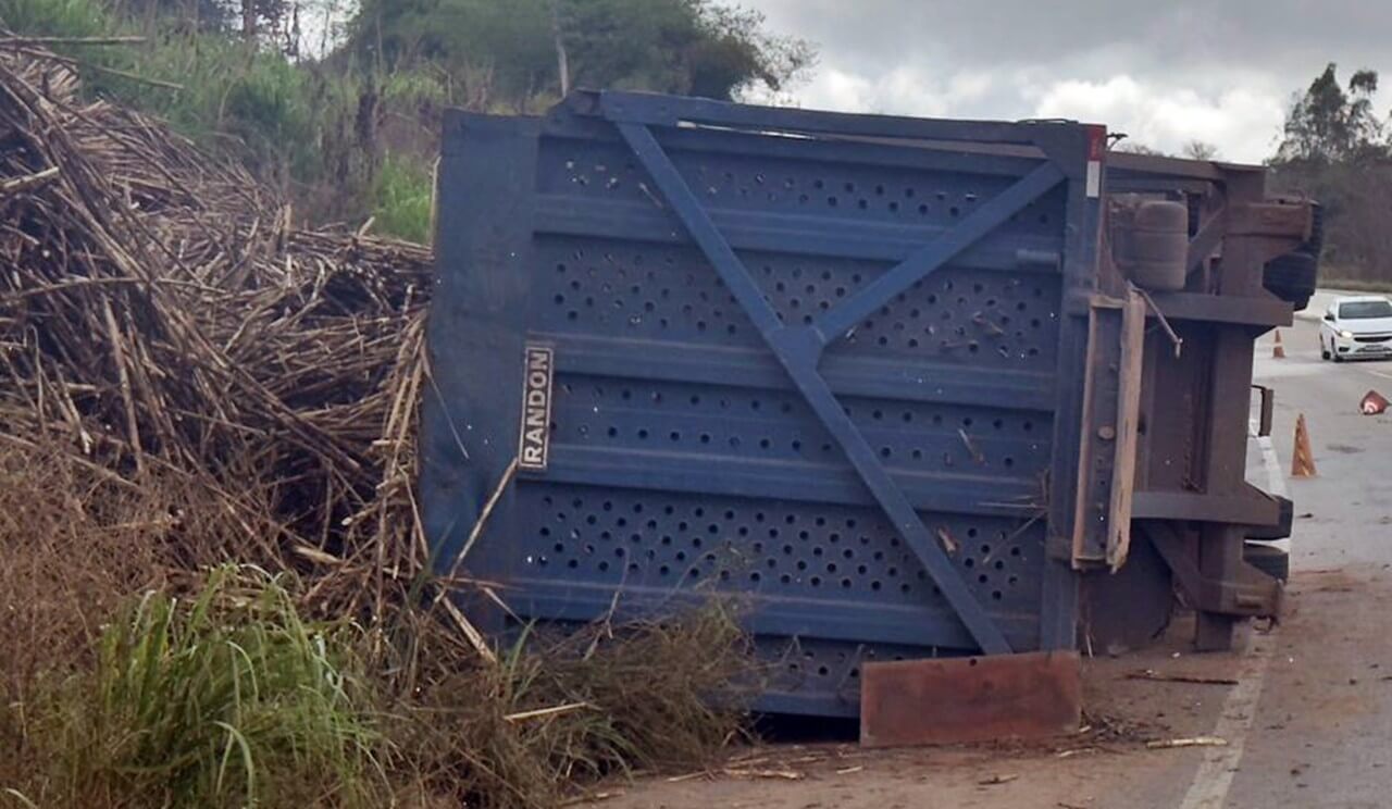 Reboque de transporte de cana tomba na BR-101 em Alagoas