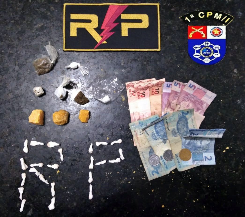 Ao perceber a presença da polícia, um dos homens evadiu, no entanto, acabou sendo interceptado. Ao realizar buscas no perímetro, os policiais encontraram o material entorpecente, além de um valor em dinheiro, supostamente resultado da venda de drogas.