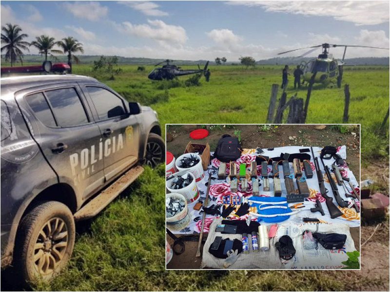 Além de armas de fogo, explosivos e grampos foram apreendidos em uma residência que serviria de base de apoio aos criminosos.