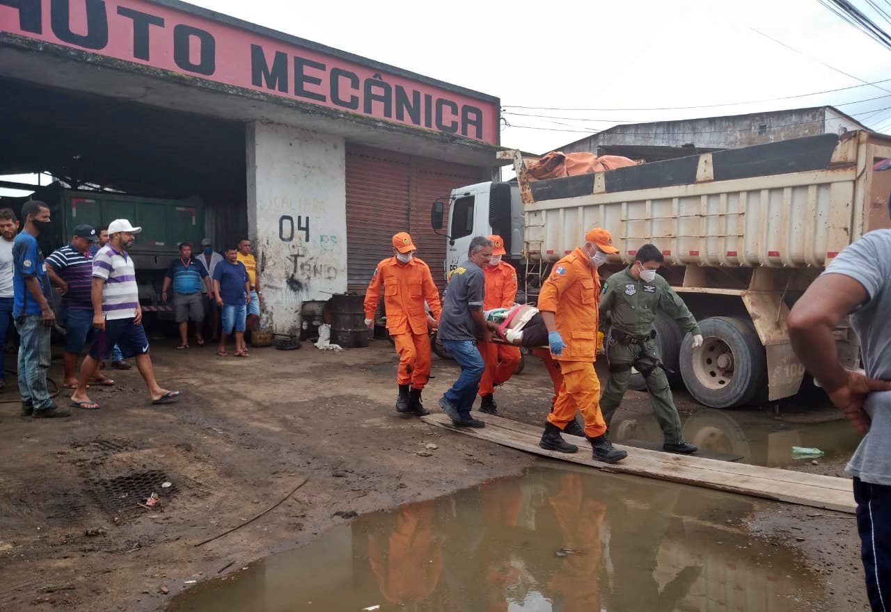 Um trabalhador, de identidade não informada, ficou preso embaixo de uma carreta, enquanto trocava um dos pneus do veículo em uma borracharia as margens da BR 101, na manhã desta segunda-feira (28), em São Miguel dos Campos.