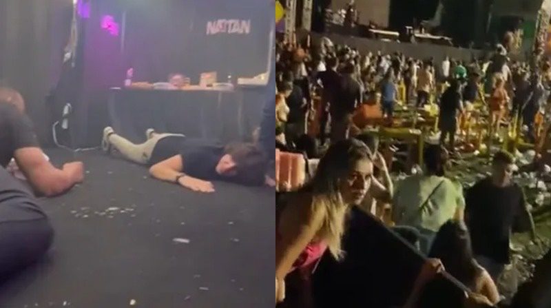 Em vídeo que viralizou nas redes sociais, Nattanzinho aparece deitado no chão do camarim acompanhado de outras pessoas. Segundo ele, ninguém de sua equipe saiu ferido. Antes dele, subiu ao palco o cantor Xand Avião.
