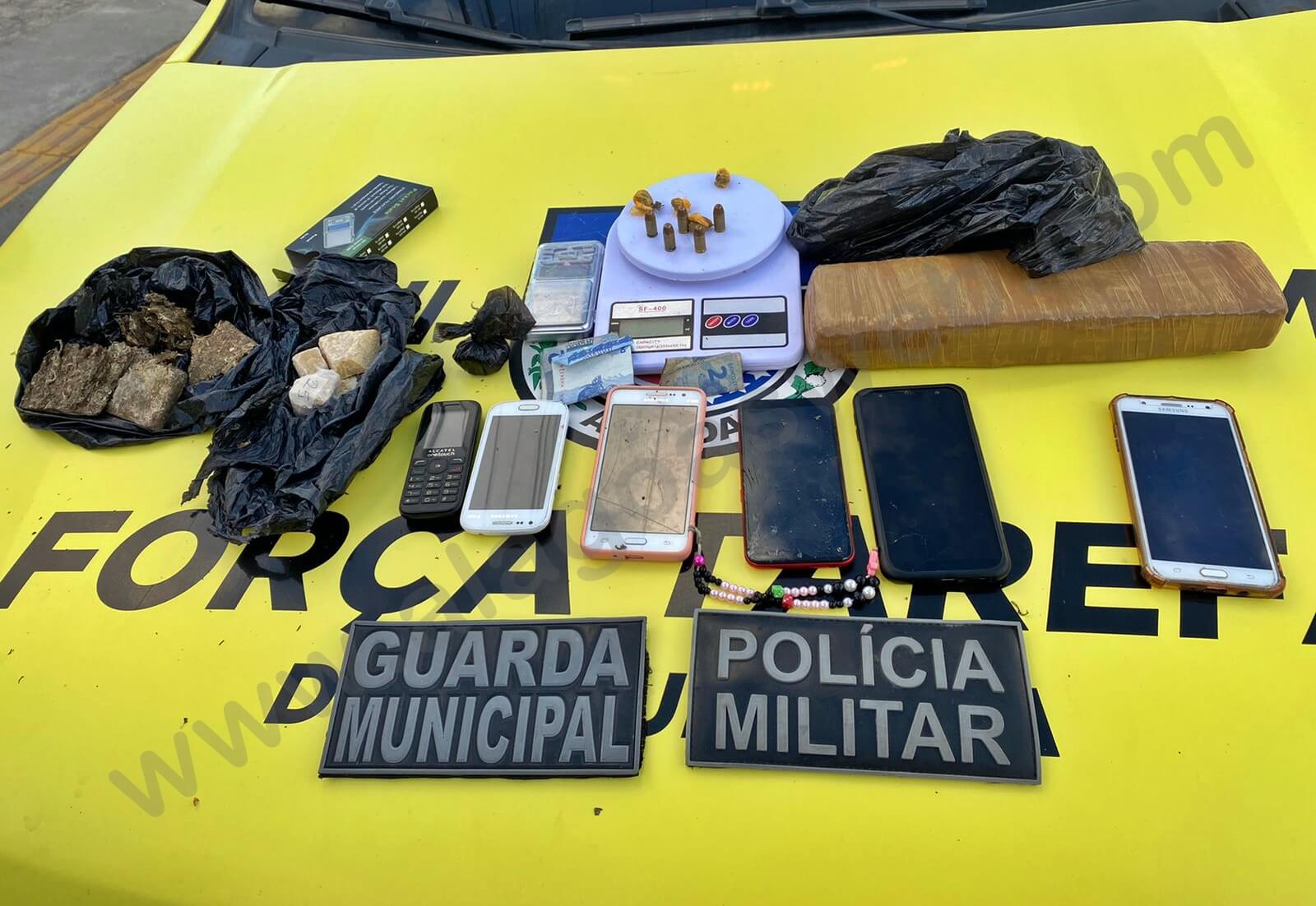 Além de uma quantidade considerável de maconha (quase 1kg) do entorpecente, a polícia apreendeu crack, uma balança de precisão, munição para pistola calibre ponto 40 e cinco aparelhos celulares.